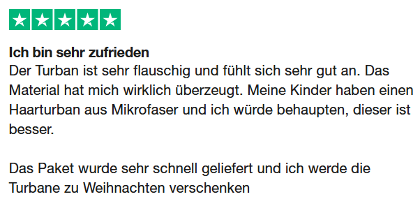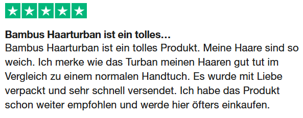 "Der beste Turban den ich hatte! Saugstark und angenehm zu tragen. Zu empfehlen!" - Lana