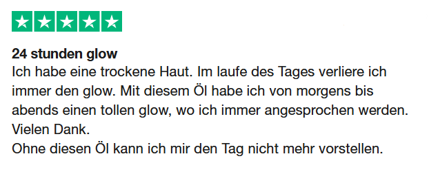 Ich habe vor zwei Wochen meine Öle bekommen. Was soll ich sagen. Ich bin begeistert. Ich habe sehr trockene Haut und habe jetzt endlich was gefunden, was meine Haut geschmeidig macht. Mein Hautbild hat sich verbessert und ich finde, dass meine Augenfalten auch nicht mehr so tief sind. Vielen Dank und wird auf jeden Fall nochmal bestellt.
