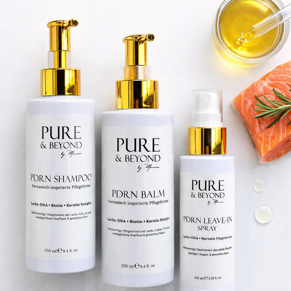 In Korea gilt PDRN (Lachs-DNA) längst als Geheimtipp für starke Kopfhaut und sichtbar dichteres Haar. Der innovative Wirkstoff unterstützt die Regeneration der Haarwurzel, stärkt die Haarfaser von innen und reduziert Haarbruch spürbar. Kombiniert mit Keratin, Biotin und nährenden Lipiden entsteht eine neue Generation der Haarpflege – für mehr Fülle, Kraft und natürlichen Glanz ab der ersten Anwendung.