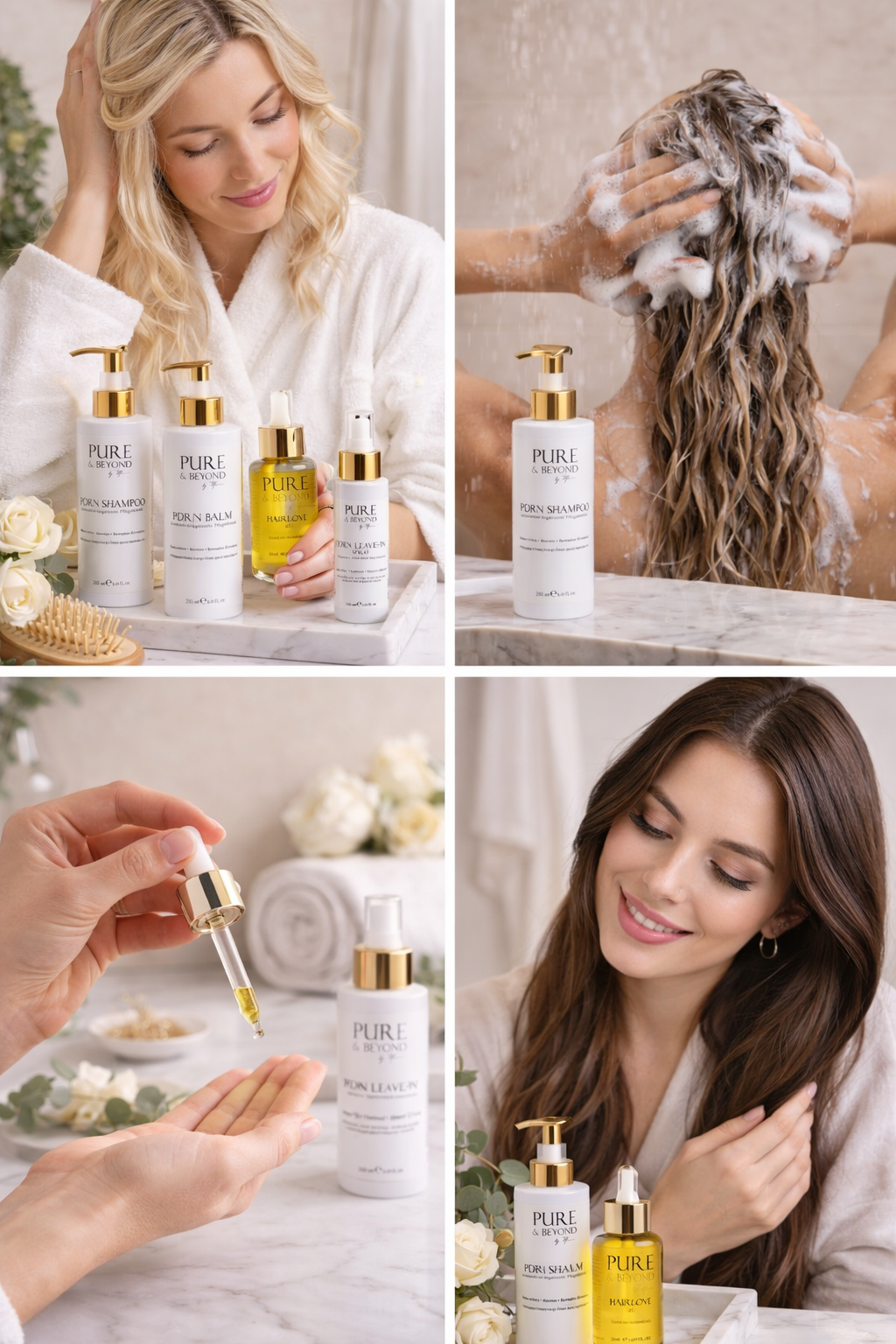 PDRN unterstützt die Kopfhautregeneration, Biotin stärkt die Haarwurzel und Keratin repariert die Haarstruktur. Das Ergebnis: weniger Haarbruch, mehr Stärke, sichtbar dichteres Haar.
