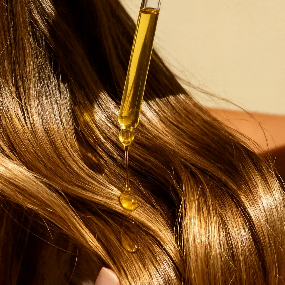 Trage das Hairlove Oil großzügig auf Kopfhaut und Längen auf und massiere es ein. Lass es mindestens 2–3 Stunden oder über Nacht einwirken.